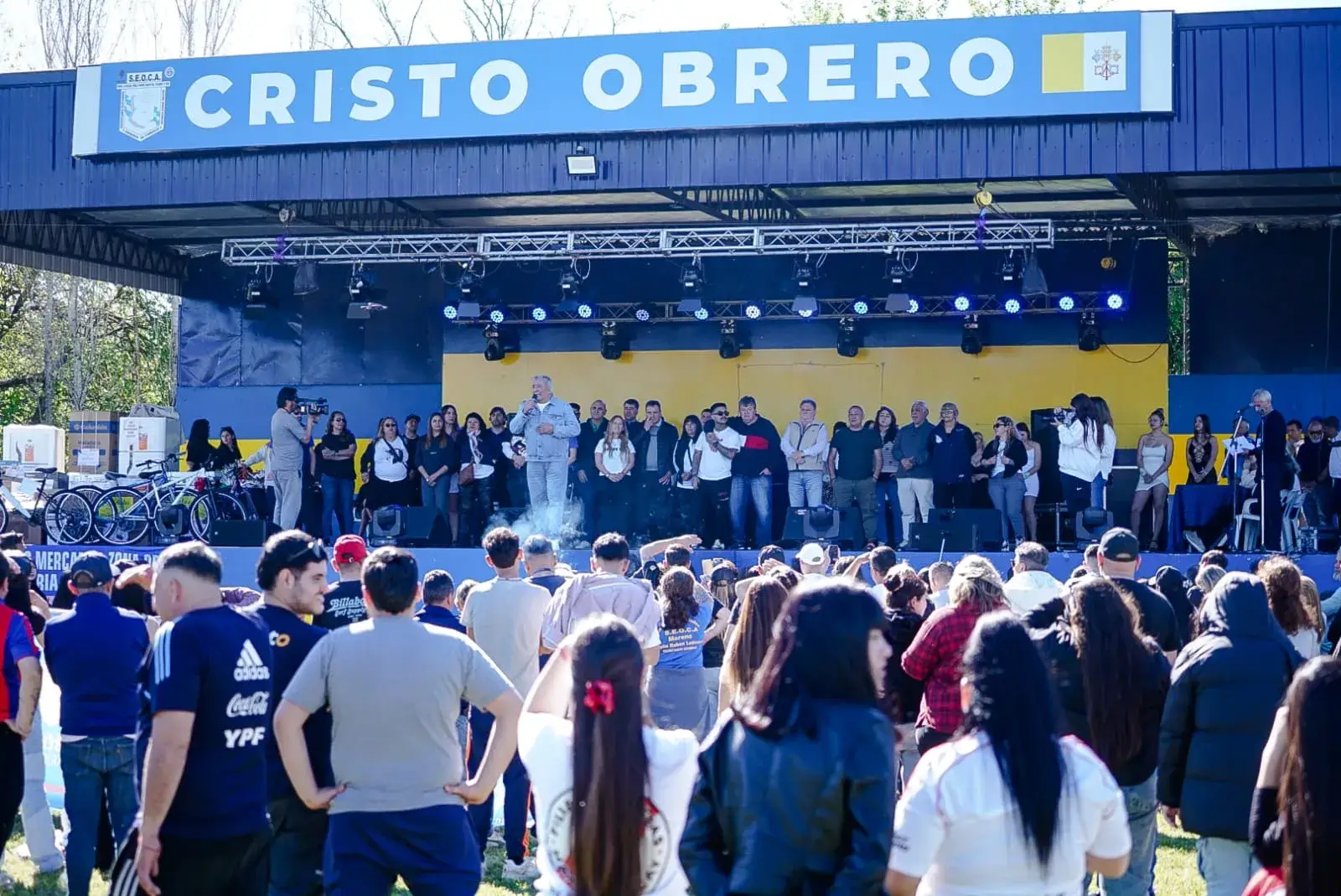 Desde el escenario Cristo Obrero, el secretario General, Julio Rubén Ledesma, previo a la coronación de la reina y el rey de los empleados de comercio, realizó la presentación de los integrantes de la lista “Celeste y Blanco” que ganó en las elecciones del sindicato realizadas en agosto, y asumirán a principio de enero 2026.